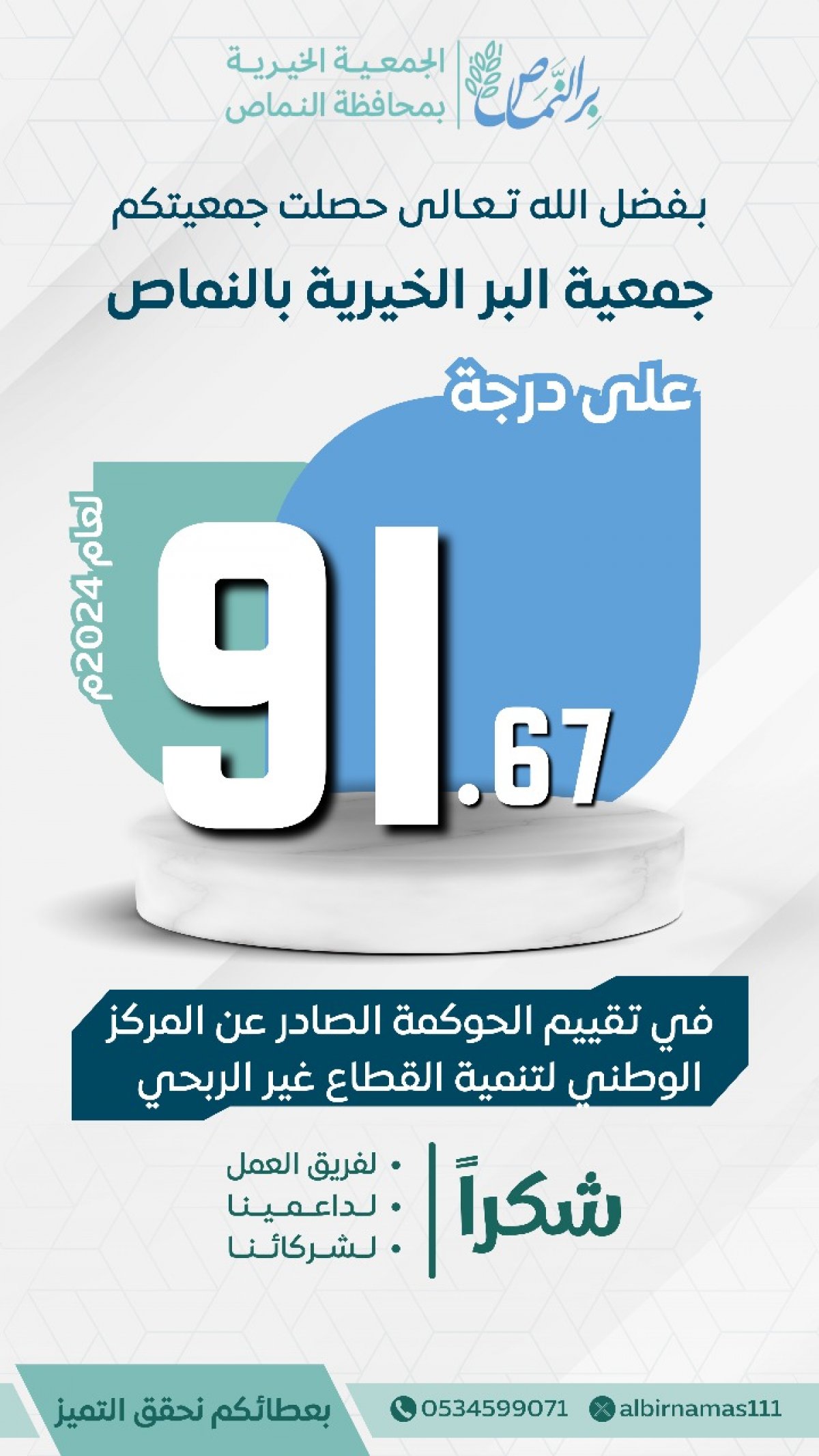 تعد الجمعية الخيرية بالنماص إحدى أهم روافد التنمية الفردية والمجتمعية والتي تتبنى عدة مشاريع تنموية و تكافلية وتسعى لتقديم المساعدات الدورية ( النقدية - العينية ) ورفع المستوى الثقافي والتعليمي لأفراد المجتمع وذلك لأجل تحقيق صورة مجتمعية أفضل,,
